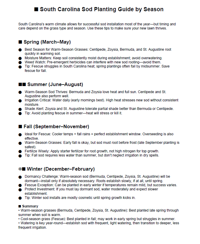 South Carolina SOD planting guide